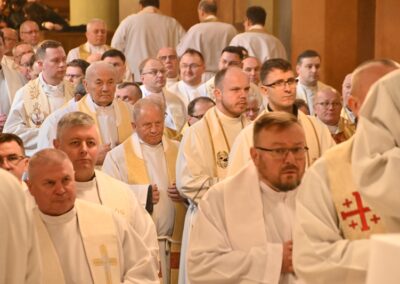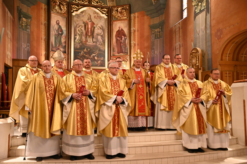 Podczas liturgii szczególną modlitwą i wdzięcznością otoczono kapłanów obchodzących jubileusze święceń. Pamiątkowe dyplomy od ks. biskupa Romana otrzymali tegoroczni srebrni jubilaci: ks. Roman Ciemiera, ks. Damian Koryciński, ks. Sławomir Kołata, ks. Dariusz Ludwin, ks. Paweł Nowak, ks. Przemysław Sawa, ks. Grzegorz Strządała, ks. Sławomir Suski oraz ks. Robert Szymocha, a także złoty jubilat: ks. kanonik Tadeusz Nowok.