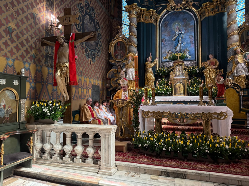 W żywieckiej konkatedrze pw. Narodzenia Najświętszej Marii Panny w dniu 5 kwietnia br. ks. biskup Piotr Greger odprawił uroczystą Eucharystię Zmartwychwstania Pańskiego.