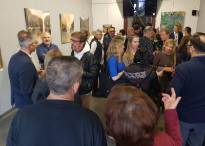 Licznie zgromadzonych uczestników wernisażu, zarówno artystów, jak i przyjaciół sztuk pięknych, przywitał Mirosław Mikuszewski, a wśród nich, obecnego prezydenta miasta Jarosława Klimaszewskiego, który gratulując wszystkim członkom bielsko-bialskiego okręgu ZPAP oraz artystce wystawy, z okazji pięknego jubileuszu 80 letniej działalności, życzył dalszych sukcesów na kolejne lata funkcjonowania.