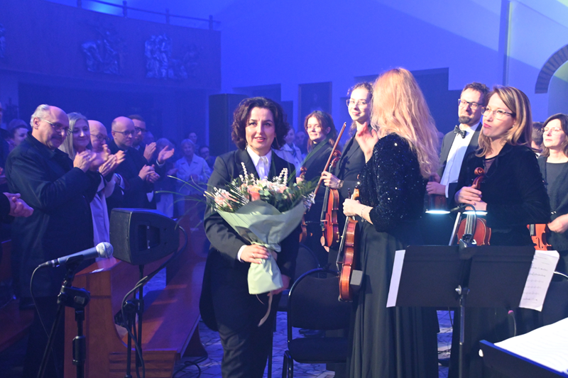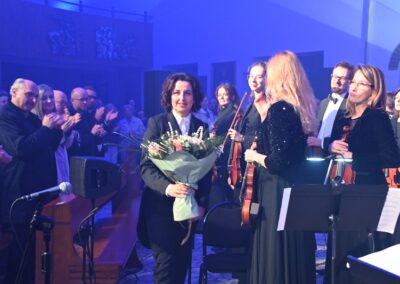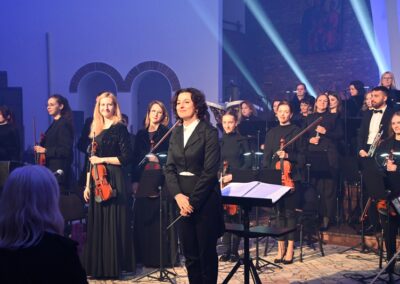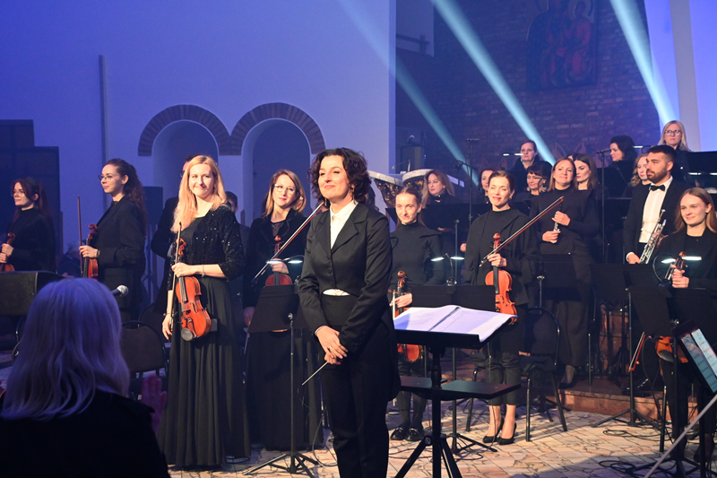 Dyrygentką koncertu była prof. Agnieszka Franków-Żelazny – dyrygentka i organizatorka życia muzycznego. Studiowała dyrygenturę i śpiew w Akademii Muzycznej im. Karola Lipińskiego we Wrocławiu, biologię na Uniwersytecie Wrocławskim oraz zarządzanie na Uniwersytecie Ekonomicznym w Krakowie. W swoim dorobku ma kilkadziesiąt prawykonań muzyki polskiej, 25 nagranych płyt oraz ponad 80 nagród indywidualnych i zespołowych, w tym Nagrodę „Iuvenes Wratislaviae” Polskiej Akademii Nauk, Srebrny Medal Zasłużony Kulturze Gloria Artis oraz dwie nagrody Fryderyk. W latach 2000–2014 prowadziła założony przez siebie Chór Medici Cantantes Uniwersytetu Medycznego we Wrocławiu, a w latach 2006–2021 była dyrektor artystyczną Chóru Narodowe Forum Muzyki. Od 1 stycznia 2025 roku pełni funkcję dyrektora Opery Wrocławskiej.
