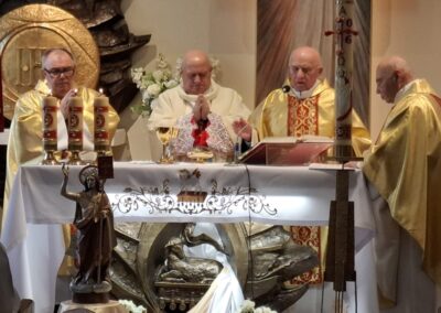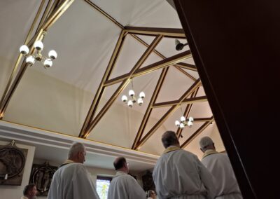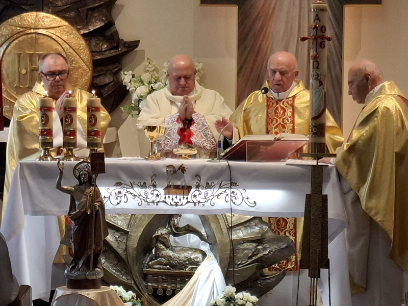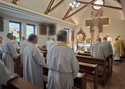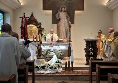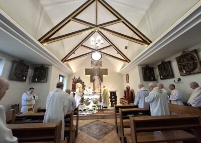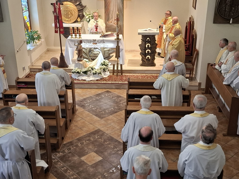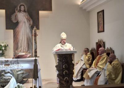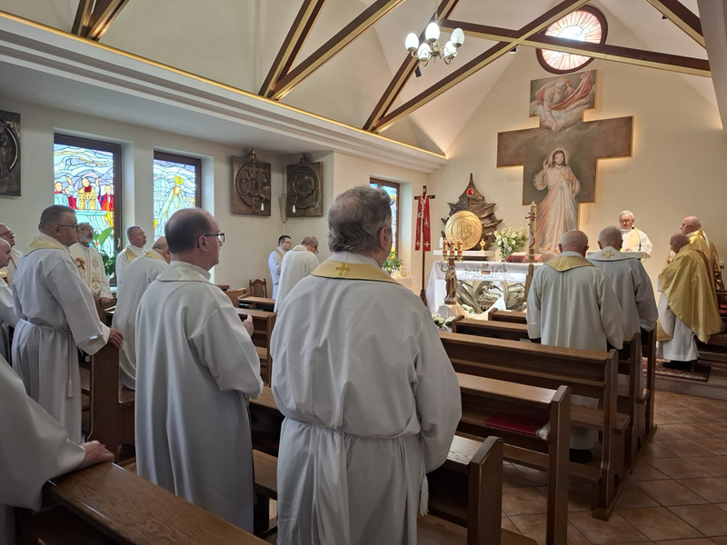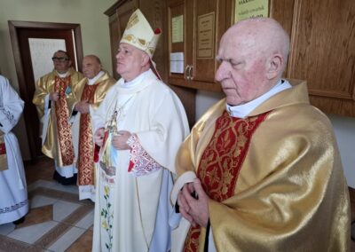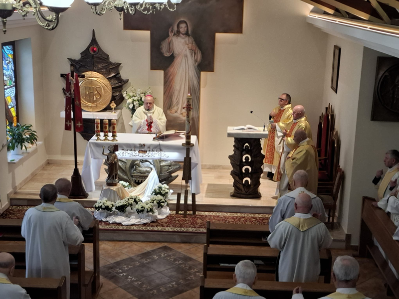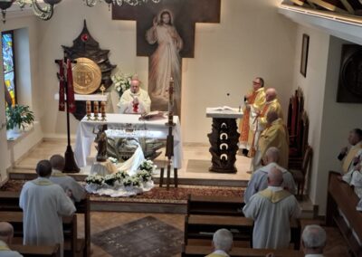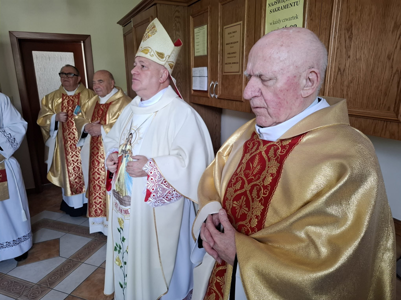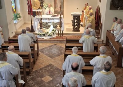Uroczystą Eucharystię z ks. biskupem Piotrem wraz jubilatami sprawował ks. prałat Oskar Kućka, który w tym roku obchodzi 55-lecie swojego kapłaństwa. W uroczystej liturgii uczestniczyło kilkudziesięciu kapłanów – zarówno księży emerytów, jak i obecnych proboszczów parafii, w których na przestrzeni lat posługiwali jubilaci, a także duszpasterzy związanych z ich kapłańską drogą. Zwracając się do zebranych kapłanów ks. biskup Piotr powiedział m. in: