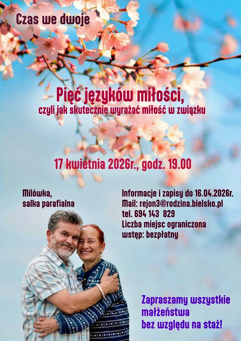 Organizatorzy zapraszają wszystkie małżeństwa na wyjątkowy wieczór, który odbędzie się 17 kwietnia w Milówce. To spotkanie zatytułowane „Pięć języków miłości, czyli jak skutecznie wyrażać miłość w związku” będzie okazją, by na chwilę zatrzymać się w codziennym biegu i skupić na tym, co najważniejsze – na relacji.