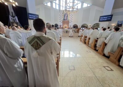 W okresie wielkanocnym czytamy w liturgii kolejne fragmenty Dziejów Apostolskich. Księga wyszła spod pióra świętego Łukasza i opisuje losy młodego Kościoła, po Chrystusowym zmartwychwstaniu – najpierw jerozolimskiego, a potem obejmującego kolejne obszary, aż po Rzym. W pierwszej fazie (całe cztery rozdziały) mamy Kościół idealny, wręcz wzorcowy, będący jednością. Uczniowie potrafią się modlić razem z tymi, którzy zabili ich Pana. Nikomu niczego nie brakuje, w razie potrzeby jeden pomaga drugiemu, dzieląc się także swoim mieniem. Potem odzywa się ludzka słabość, zaczynają się problemy, pojawiają się pierwsze pęknięcia. W rozdziale piątym mamy historię Ananiasza i Safiry, a dziś (początek rozdziału szóstego) słyszymy o tym, że helleniści zaczęli szemrać przeciwko Hebrajczykom, ponieważ przy codziennym rozdawaniu jałmużny zaniedbywano ich wdowy (por. Dz 6, 1). Pojawia się bardzo konkretny problem: ci, którzy wyrośli w obszarze kultury greckiej poróżnili się z tymi, którzy mają rodowód żydowski. Ci pierwsi żyli w diasporze, byli rozproszeni poza teren Ziemi Świętej, a życie tych drugich było skoncentrowane wokół Jerozolimy, Nazaretu i Betlejem. Jeszcze niedawno byli razem, czuli silną więź braterską, a teraz zaczyna im to przeszkadzać, staje się przyczyną wyraźnego podziału. Święty Łukasz zauważa, że metoda rozwiązania stosowana przez nich jest najgorszą z możliwych: helleniści przeciwko Hebrajczykom zaczęli szemrać. Nie było ani jednego odważnego, aby o problemie powiedział otwarcie, prosto z mostu, niczego nie ukrywając. Zaczęli szemrać, czyli plotkować, obmawiać, oczerniać: jeden drugiemu, trzeci czwartemu, piąty następnemu… i ten łańcuch szemrania nie ma końca. To jest najkrótsza droga do rozbicia jedności i eskalacji konfliktu. Jak chcesz cokolwiek w życiu rozwalić (w domu, szkole, zakładzie pracy, w Kościele), to zacznij szemrać; efekt murowany i to bardzo szybko. Bez względu na wydarzenia i okoliczności, w Kościele (zwłaszcza wobec pasterzy) zawsze obowiązuje pierwszeństwo dla praktyki modlitwy i posługi słowa Bożego. Wszystkie dokumenty Kościoła, zwłaszcza doby posoborowej, mówią wyraźnie o tym, że wspólnoty parafialne są miejscem nauczania i uświęcania. Dzisiejszy opis powołania pierwszych siedmiu diakonów jest dla nas przypomnieniem pierwszego stopnia sakramentu święceń. W momencie przyjęcia święceń prezbiteriatu czy święceń biskupich nie przestaliśmy być diakonami. W nasze kapłańskie DNA jest wpisane zadanie służenia, także poprzez głoszenie słowa Bożego. Jeśli popatrzymy na siebie w optyce wszystkich trzech stopni sakramentu święceń, podczas każdej z tych liturgii jest obecny znak księgi ewangeliarza. Przyjmujący święcenia diakon czy prezbiter, otrzymuje od biskupa księgę Pisma świętego, a podczas święceń biskupich ewangeliarz jest rozłożony nad głową konsekrowanego elekta. Pierwszym znakiem otrzymanym w czasie święceń, stanowiącym wyraz przyjętego zadania, jest księga Ewangelii; to jest nasze pierwsze i podstawowe zadanie. Tymczasem prowadzone badania pokazują, że z posługą uświęcania to sobie jeszcze jakoś radzimy. Natomiast wspólnoty parafialne coraz bardziej przestają być przestrzenią nauczania. Trochę nam w tym „pomogła” katecheza w szkole, co spowodowało, że czujemy się coraz bardziej zwolnieni od misji nauczania (zasadniczo ograniczamy się do niedzielnej homilii; w tygodniu różnie z tym bywa; katechezy przed sakramentalne bywają skracane do minimum). Te same badania wskazują, że dla ponad 80 procent naszych wiernych jedyną formą przekazu wiary jest niedzielna homilia (o ile starają się jej wysłuchać). Chcąc nauczać, wpierw sami musimy być gorliwymi słuchaczami tego, co Pan Bóg ma nam do powiedzenia. Ze słuchania Boga i pełnienia Jego woli, Jezus czyni kryterium nowej rodziny, do tej pory niespotykanej. To nie jest klasycznie rozumiana rodzina jako grupa ludzi mających ze sobą więzy krwi. To nie jest żadna szeroko rozumiana rodzina jako zespół ludzi, którzy mają jasno określony cel i wszyscy, na miarę swoich możliwości, próbują go osiągnąć (np. zespół sportowy). Kryterium przynależności do rodziny Jezusa jest konkretne: słuchanie Boga i pełnienie Jego woli. Na ile słuchamy Boga i podejmujemy wysiłek życia według Jego nauki, na tyle należymy do rodziny Jezusa. Na ile Boże słowo nas inspiruje, motywuje, na ile się tym słowem Boga przejmujemy (w sensie pozytywnym), na tyle należymy do tego grona, w którym są Jego siostry, bracia i jest Jego matka. Jako kapłani, także ci grający w piłkę nożną lepiej niż inni, jesteśmy do końca życia wyłącznie w sprawach modlitwy i przepowiadania słowa Bożego. Bądźmy gorliwymi szafarzami łaski Bożej i głosicielami Ewangelii, mobilizujmy, przekonujmy innych, że jeśli będzie w nas Pan Bóg i pełnienie Jego woli, to będziemy daleko od pokusy szemrania, która niczego nie rozwiązuje, a sprawę jeszcze bardziej komplikuje”.