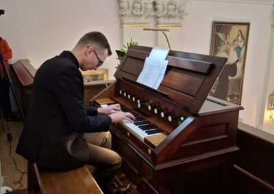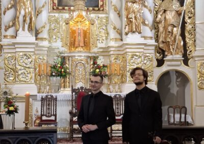 Po zakończeniu obrzędu poświęcenia odbył się koncert muzyki organowo- kameralnej, który zaprezentował pełnię możliwości odnowionego instrumentu. Wystąpili Maciej Leśniak (organy) oraz Bartosz Kołodziej (skrzypce), którzy wykonali m. in utwory: „Preludium do Te Deum”- Marka -Antoine Charpentiera, „Ave Maria”- Charlesa- Francoisa Gounoda, Toccata fuga F-dur- Dietricha Buxtehude. Obecne organy, które zostały uroczyście „wzbudzone” po renowacji w 2026 roku, pochodzą z końca XIX wieku. Zostały zbudowane w latach 1896–1897 przez znaną lwowską firmę organmistrzowską Jana Śliwińskiego – jednego z najwybitniejszych budowniczych organów w tej części Europy. Jego warsztat słynął z instrumentów łączących solidność wykonania z charakterystycznym, ciepłym i śpiewnym brzmieniem, które do dziś uznawane jest za znak rozpoznawczy jego realizacji. W ciągu XX wieku organy były wielokrotnie poddawane doraźnym naprawom i modyfikacjom, które wynikały zarówno z naturalnego zużycia, jak i zmieniających się warunków technicznych. Mimo tych ingerencji instrument zachował swój pierwotny charakter brzmieniowy, choć z biegiem lat wymagał coraz bardziej kompleksowej interwencji konserwatorskiej. Przełomowym momentem stała się gruntowna renowacja przeprowadzona w latach 2025–2026 przez specjalistyczną Pracownię Organ-mistrzowską Grzegorza Bałchana z Bielska-Białej. Prace objęły pełny demontaż instrumentu, konserwację wszystkich jego elementów – od piszczałek, przez trakturę mechaniczną, aż po miechy i wiatrownice – oraz rekonstrukcję części najbardziej zniszczonych. Odnowiono również kontuar i szafę organową, przywracając im dawną estetykę i funkcjonalność. W liturgii i koncercie uczestniczyli kapłani, przedstawiciele parafii, wykonawcy prac konserwatorskich, zaproszeni goście oraz wierni, w tym m. in. przedstawiciele Bractwa św. Jana Kantego.