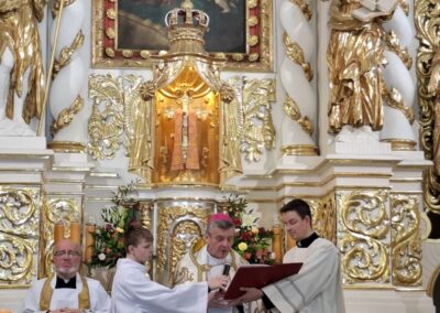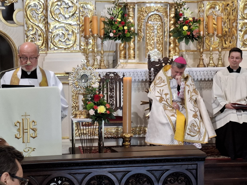Uroczystościom przewodniczył ks. biskup Roman Pindel, który dokonał poświęcenia instrumentu, przywracając mu funkcję służby liturgicznej i koncertowej po zakończonej renowacji. Wprowadzenia do uroczystości dokonał kustosz sanktuarium ks. Zbigniew Jurasz. Witając zgromadzonych powiedział, że sobotnie wydarzenie jest nie tylko prezentacją odnowionego instrumentu, ale jego przebudzeniem – „powrotem głosu, który przez miesiące milczał, by znów stać się modlitwą wspólnoty”. „Organy, które przez czas remontu milczały, dziś odzyskują swój głos – głos, który nie przemawia sam dla siebie, lecz zawsze dla Kogoś i za kogoś. Ich dźwięk jest modlitwą zapisaną w powietrzu, oddechem wspólnoty, która wierzy, że piękno może prowadzić do Boga”.„Za chwilę organy znów przemówią. Być może nie tylko dźwiękiem, ale i przypomnieniem, że harmonia nie rodzi się sama, że wymaga wysiłku, strojenia, cierpliwości, tak jak życie wiary. Niech więc to wzbudzenie organów stanie się również naszym wzbudzeniem – wrażliwości, uwagi, ducha. Niech uczą nas słuchać głębiej i odpowiadać pełniej”.