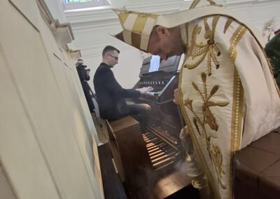 W odpowiedzi instrument „odpowiedział” muzyką, która wypełniła przestrzeń świątyni. Na organach w tym niezwykłym dialogu improwizował Maciej Leśniak- organista bielskiej katedry pw. św. Mikołaja .
